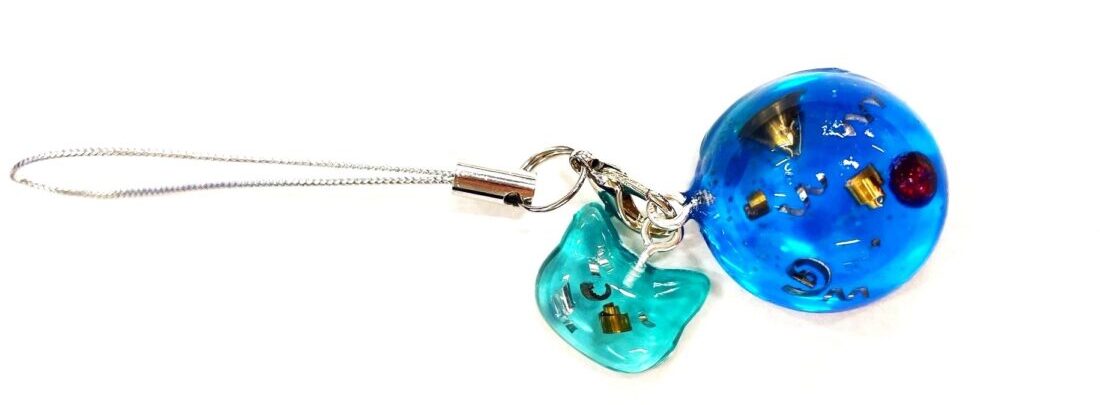 固めた後にコーティングをして金具を付けたら、切粉を使ったキーホルダーの完成です!